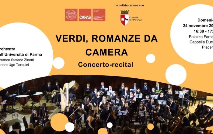 Domenica 24 novembre si terrà nella cornice cinquecentesca della Cappella Ducale di Palazzo Farnese a Piacenza il concerto-recital Verdi, Romanze da camera realizzato dall'Orchestra dell'Università di Parma in collaborazione con il Comune di Piacenza. [...]