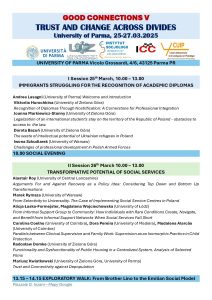 Il Centro per le Attività e le Professioni delle Arti e dello Spettacolo – CAPAS dell’Università di Parma ospita da martedì 25 a giovedì 27 marzo 2025 tre giornate di conferenze dal titolo Good Connections 5 – Trust and Change Across Divides, curata dal team di ricerca internazionale ICC – International Connectivity Centre e dal visiting professor Mariusz Kwiatkowski (University of Zielona Gora), docente di Economy of Trust.