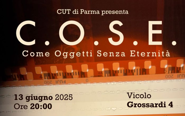 C. O. S. E. Come Oggetti Senza Eternità Esito didattico del laboratorio teatrale 2024-25 del CUT dell’Università di Parma Nella Sala Prove del Centro per le Attività e le Professioni delle Arti e dello [...]