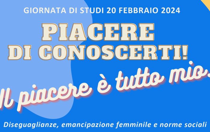 Giornata di Studi Piacere di conoscerti! Il piacere è tutto mio. Diseguaglianze, emancipazione femminile e norme sociali. 20 febbraio 2024 9:30 - 17:30 Aula F, polo didattico di Via del Prato, Università di Parma [...]