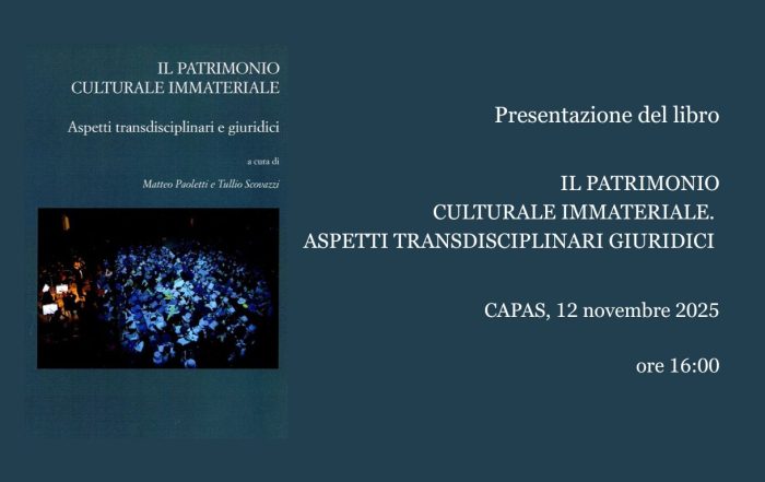 12 novembre 2025 – Incontro con Matteo Paoletti Ore 16:00 presentazione del libro “Patrimonio Culturale Immateriale. Aspetti transdisciplinari e giuridici” Mercoledì 12 novembre 2025, alle ore 16:00 presso la Sala Polifunzionale del CAPAS, al 1° piano [...]